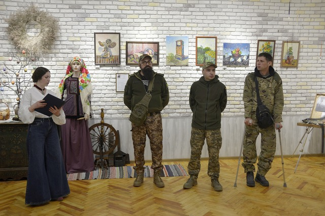 Як повідомляють у музеї, виставка представляє роботи художників-військовослужбовців та ветеранів, зокрема Дениса Недолуженка, Михайла Михайловича і Миколи Філонова. Експозиція має назву: «Мистецтво – зброя, захист, ліки».