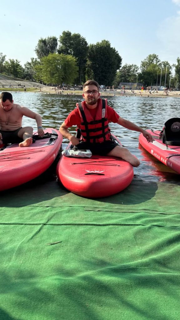 Головна та найцікавіша частина активностей у групі підтримки — спортивно-розважальна. Захисники під наглядом фізичних терапевтів пробують нові види занять відповідно до сезону. Цього разу — підкорювали дніпровські хвилі на сапбордах.