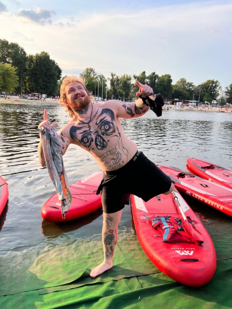 “Сапи мені подобаються. Я перший раз спробував, вирішив втримати баланс постояти на одній нозі, але це для мене закінчилось тим, що я пішов під воду. Але дві секунди я простояв, і так, мені це подобається”, — додав захисник.