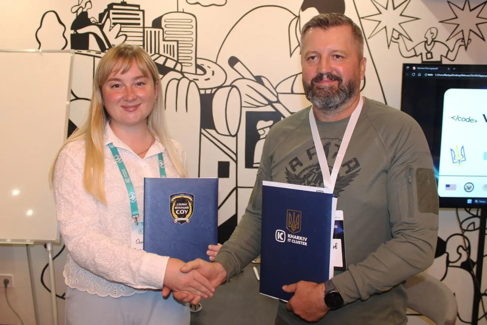 27 серпня 2025 року ГО «Спілка ветеранів СОУ» та Харківський ІТ Кластер офіційно підписали Меморандум про співпрацю. Документ спрямований на створення нових можливостей для соціальної адаптації ветеранів, їх професійного розвитку, перекваліфікації та подальшого працевлаштування у сфері інформаційних технологій. Партнерство відкриває шлях до освітніх програм, менторства, кар’єрних консультацій і залучення ветеранів до сучасних інноваційних проєктів.