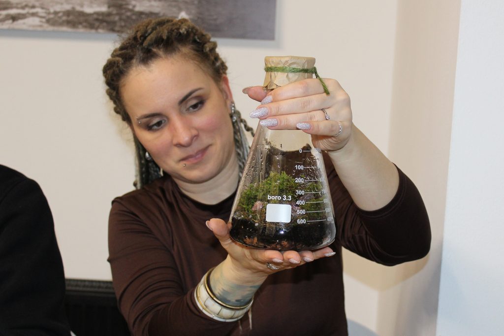 Минулого року сюрприз передбачав, що гості мають навчитися виготовляти й художньо прикрашати свічки. У цьому – вчилися створювати закриту в колбі екосистему, де між камінцями росте мох…