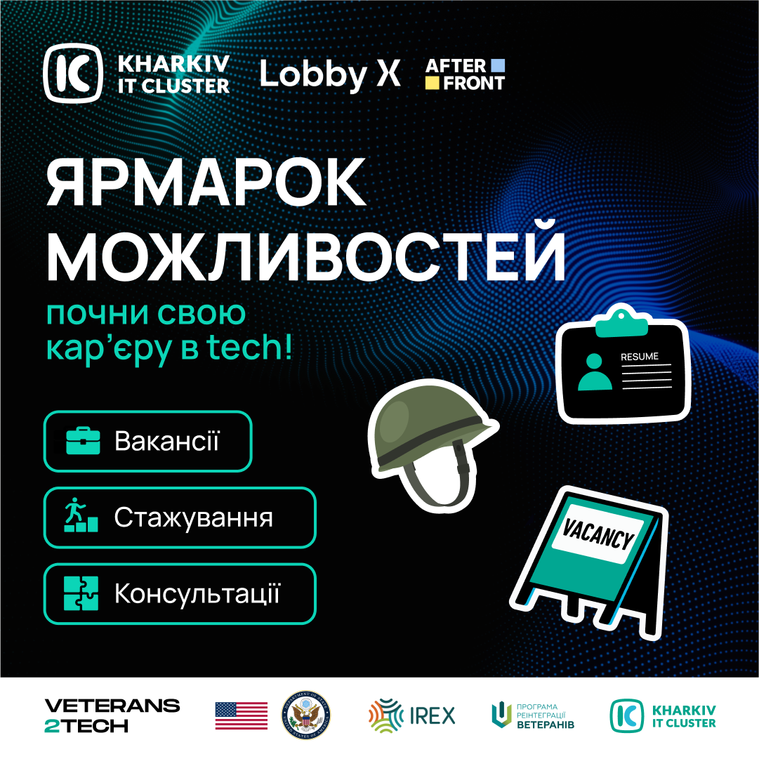 7 жовтня у Харкові відбудеться ярмарок можливостей для ветеранів, котрі планують будувати цивільну кар’єру в технологічній галузі. Учасники зможуть познайомитися з провідними ІТ-компаніями, отримати кар’єрні консультації та знайти роботу чи стажування. Для тих, хто не зможе бути присутнім особисто, додатково вестимуть онлайн-трансляцію.