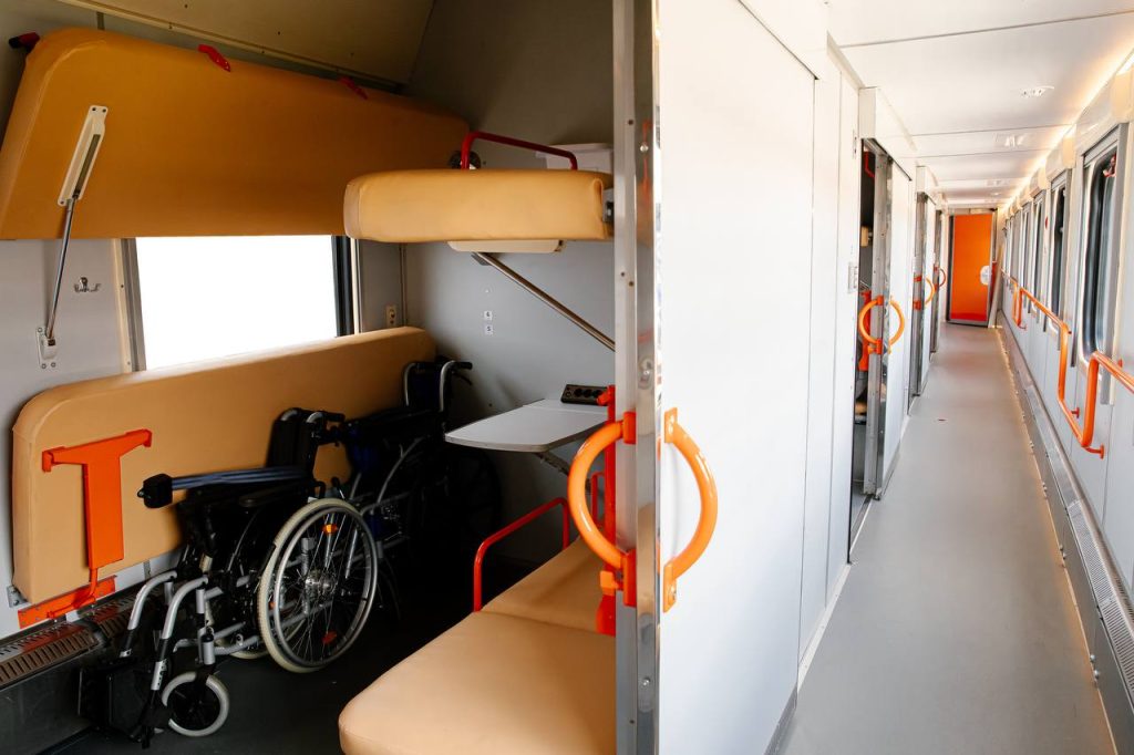 • 4 збільшені купе для 2 осіб на кріслах колісних та 2 супроводжуючих у кожному;
