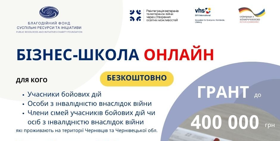 Благодійний фонд «Суспільні ресурси та ініціативи» запрошує ветеранів, ветеранок та членів їхніх родин безкоштовно взяти участь в онлайн бізнес-школі, яка відбудеться 12 серпня 2025 року.